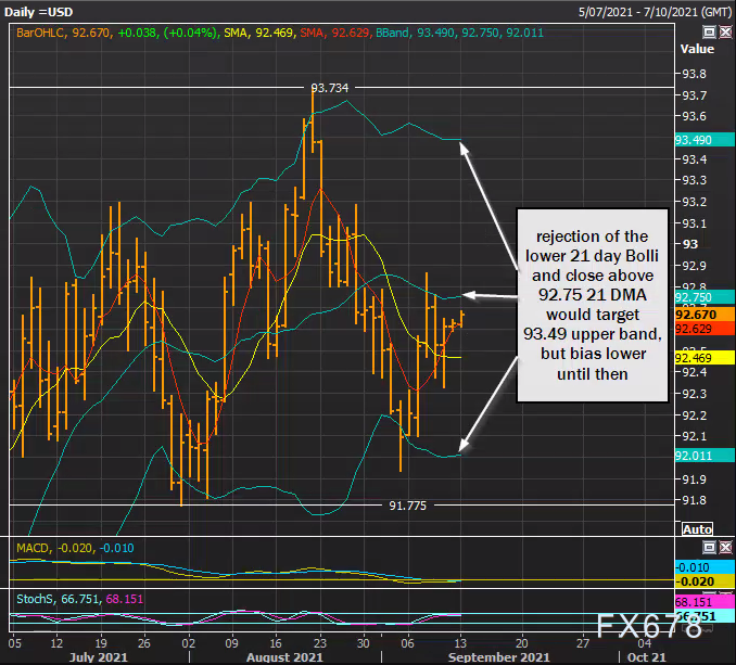 若持续突破21日移动均线92.75,则上看21日布林带区间上缘93.49。