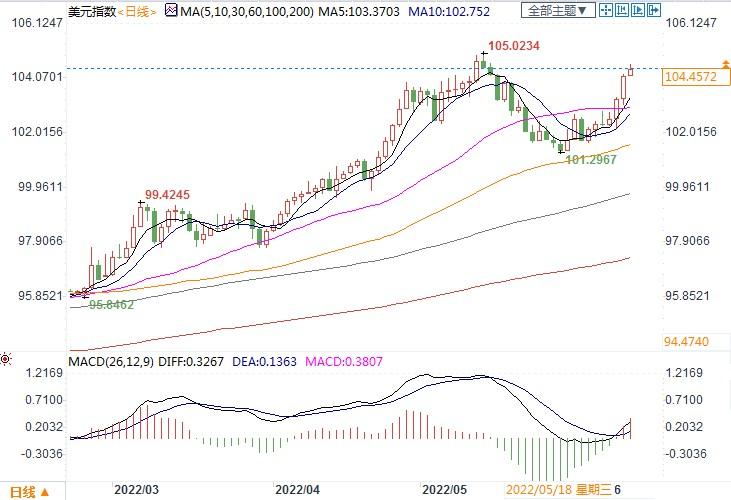 北京时间6月13日11:25,美元指数 报 104.4572