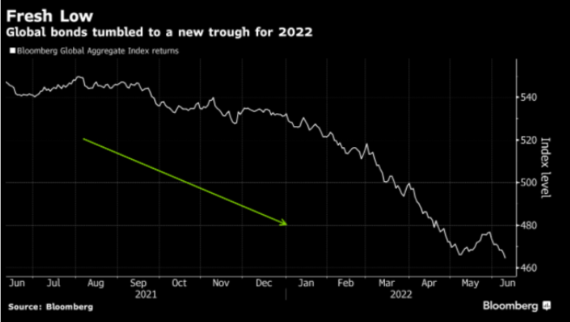 1月以来,彭博巴克莱美国综合债券指数下跌8.8%,为4年来的最大跌幅。而这一现象主要驱动因素是,投资者担心美联储通过提高利率来对抗通胀的计划会损害债券价格,因为较高的利率通常意味着较低的债券价格和较高的债券收益率。