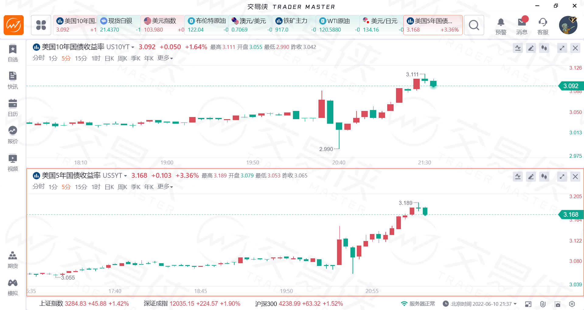 COMEX最活跃黄金期货合约北京时间6月10日20:30一分钟内买卖盘面瞬间成交3106手,交易合约总价值5.69亿美元。