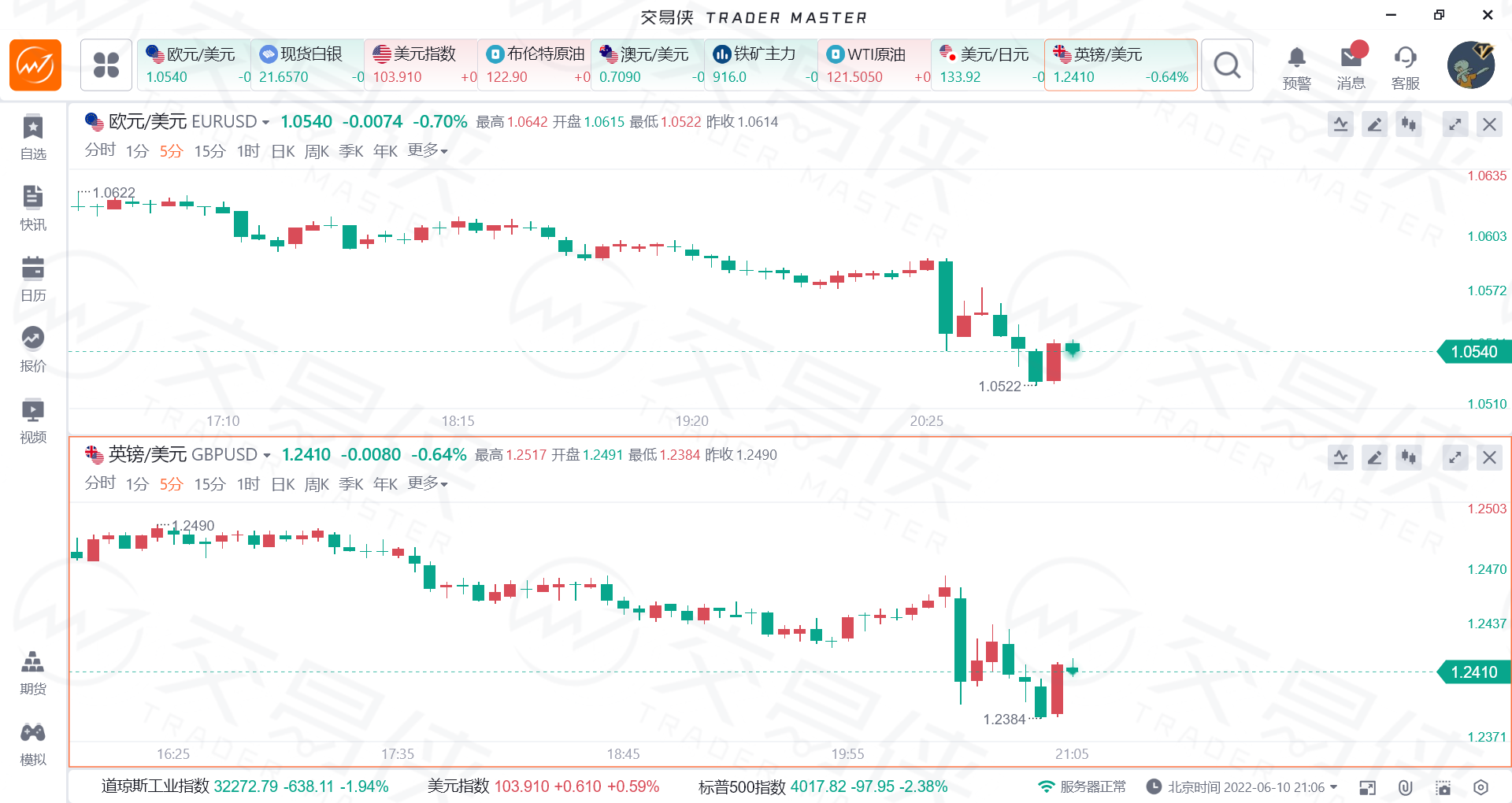非美货币跟随美元剧烈震荡,欧元兑美元刷新日内低点,随后收复部分跌幅;英镑兑美元短线下挫后回升30余点,收复1.24关口。