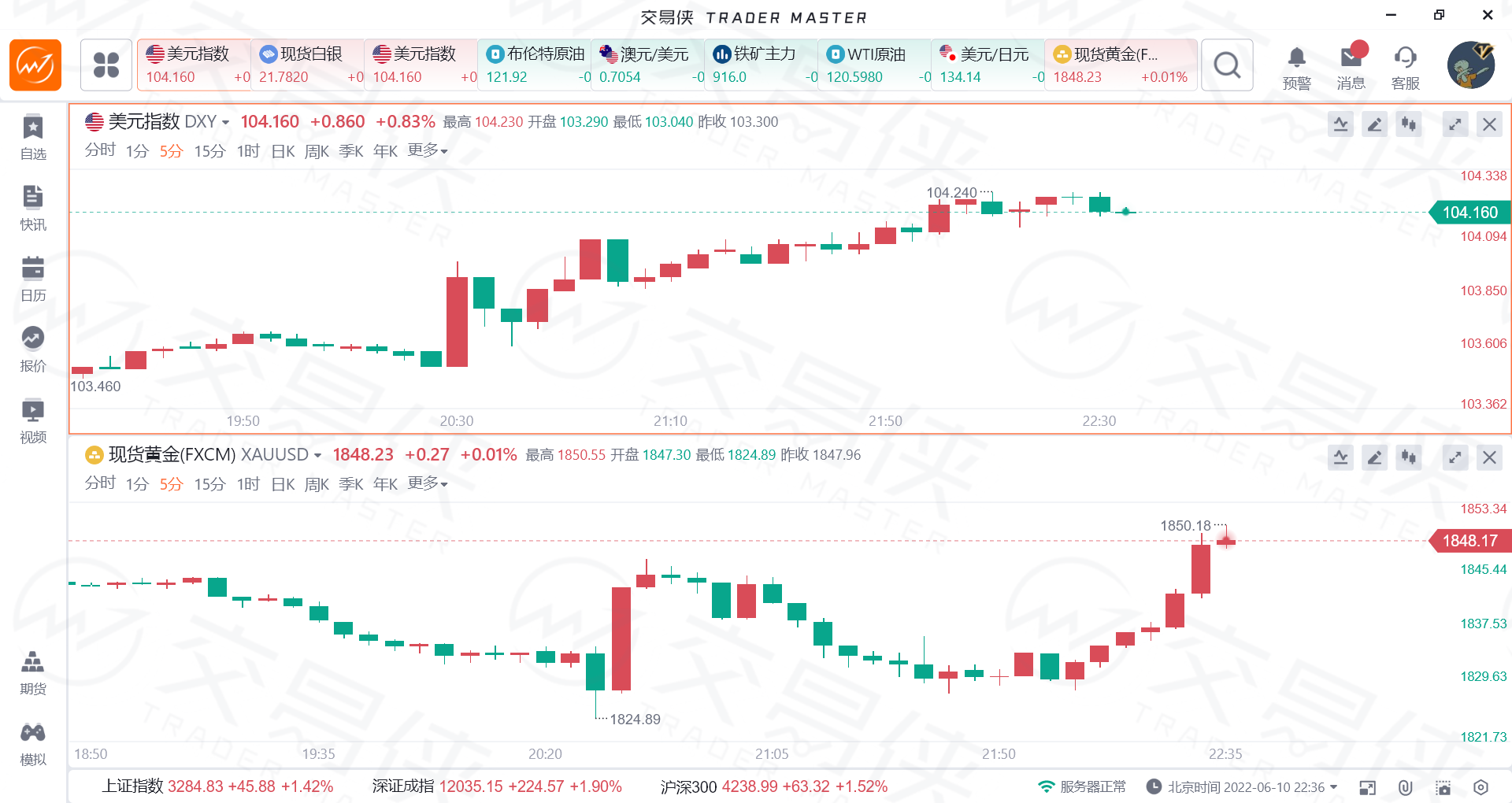 数据公布后,美元指数短线拉升40点,小幅回落后强势上破104,为近一个月以来首次,随后再度回落20点;现货黄金走势反复,日内巨震逾25美元,最高触及1850美元关口。