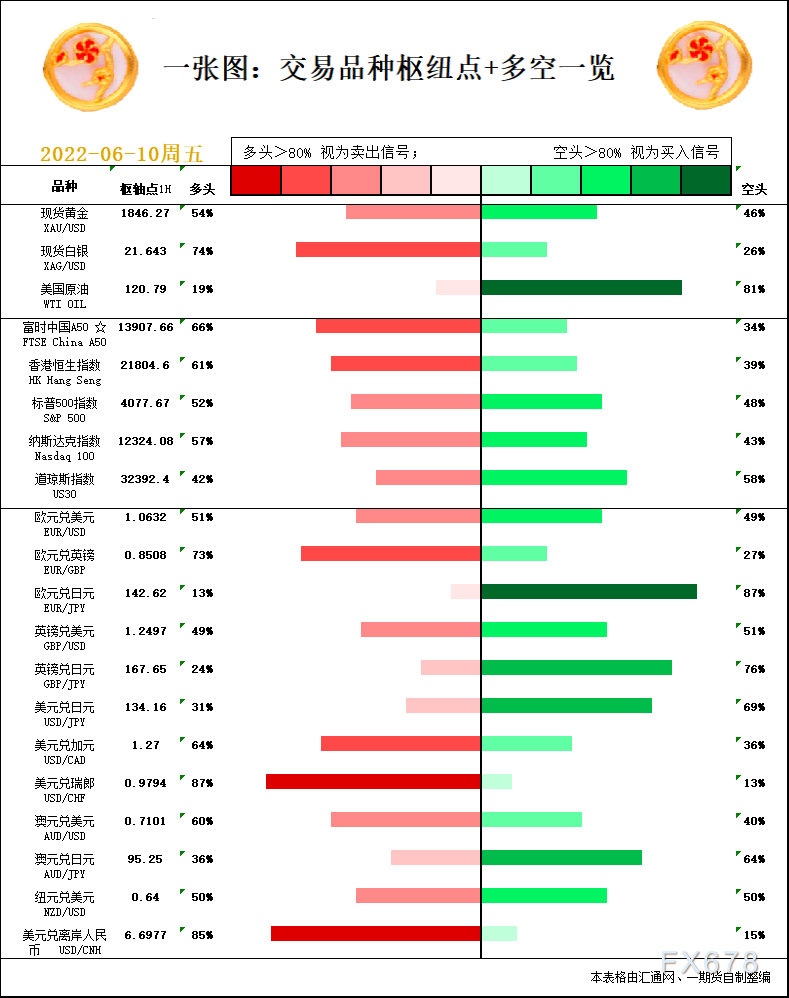 一张图:6月10日黄金白银、原油、股指、外汇“枢纽点+多空信号”;周五(6月10日)一张图看“枢纽点+多空信号”,品种包括:黄金、白银、原油、股指、欧元、英镑、日元、澳元、纽元、加元、富时中国A50、恒生指数、道指、标普500等。全球央行“争先恐后”欲加息,金价承压关注美国CPI