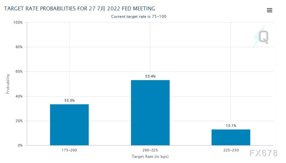 根据芝商所的美联储观察(Fed watch)工具显示,联邦基金期货交易员目前认为美联储6月份加息75个基点的可能性约为23.6%,高于上周四的3.6%。