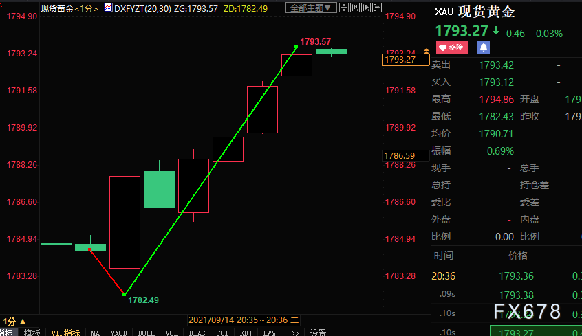 北京时间周二(9月14日)20:30,美国公布8月通胀数据,较前值有所回落,缓解了市场对美联储尽早开启缩减购债的预期。截至发稿,现货黄金跳涨逾9美元至1793.57美元/盎司,累计波动近11美元。