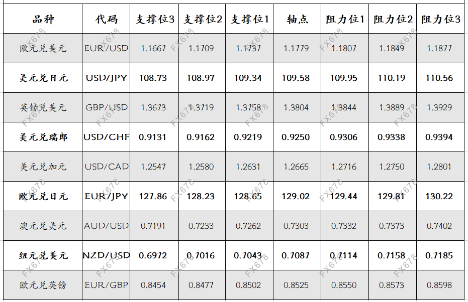 9月17日 外盘商品期货、外汇、国内黄金白银阻力支撑位