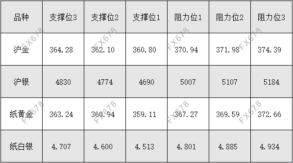 沪金、沪银、纸黄金、纸白银阻力支撑位