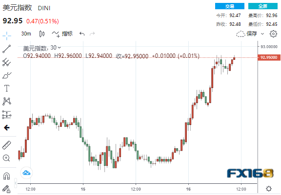 报告公布后,衡量美元兑其他六种货币汇率的美元指数上涨逾0.5%,至92.96高点,为8月27日以来的最高水平。