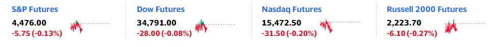 美股期货方面:在欧股开盘阶段,标准普尔500指数期货和道琼斯指数期货交易持平,而纳斯达克期货下跌0.1%。截至发稿,美股期货走势如图: