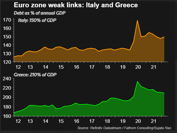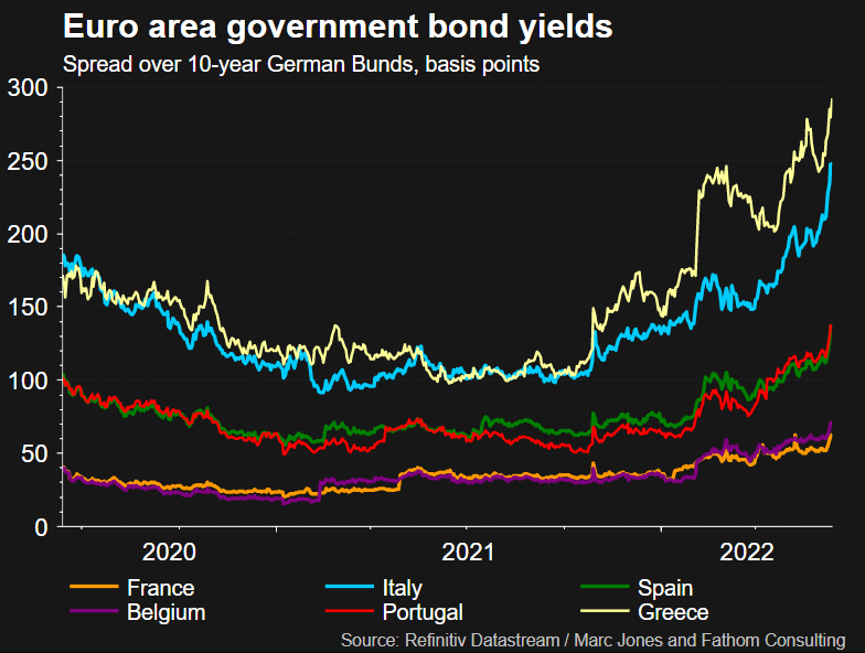 欧元区债券市场的抛售不禁让人想起十多年前的欧债危机,凸显出欧元区分裂风险的增加。