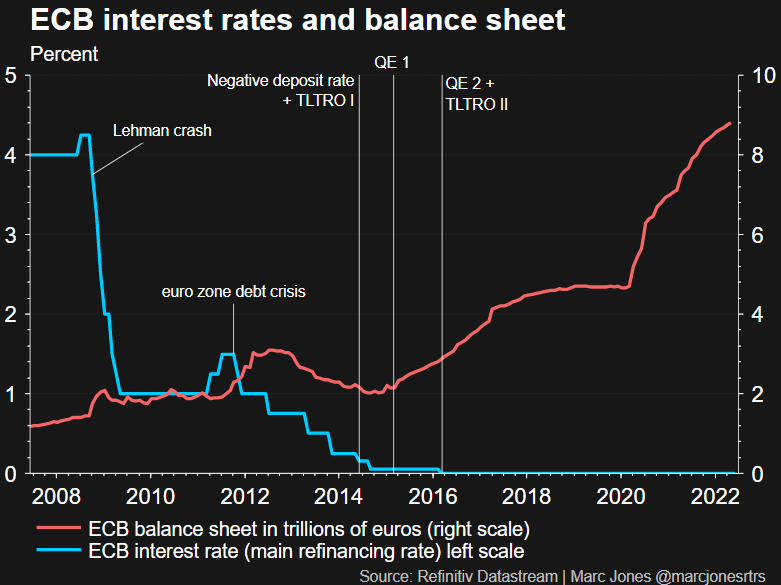“尽管欧洲央行可以用火箭筒(印钞)让市场满意,但在不得不对抗通胀的时候,这样做反而越来越难了,这需要各国政府团结起来。”