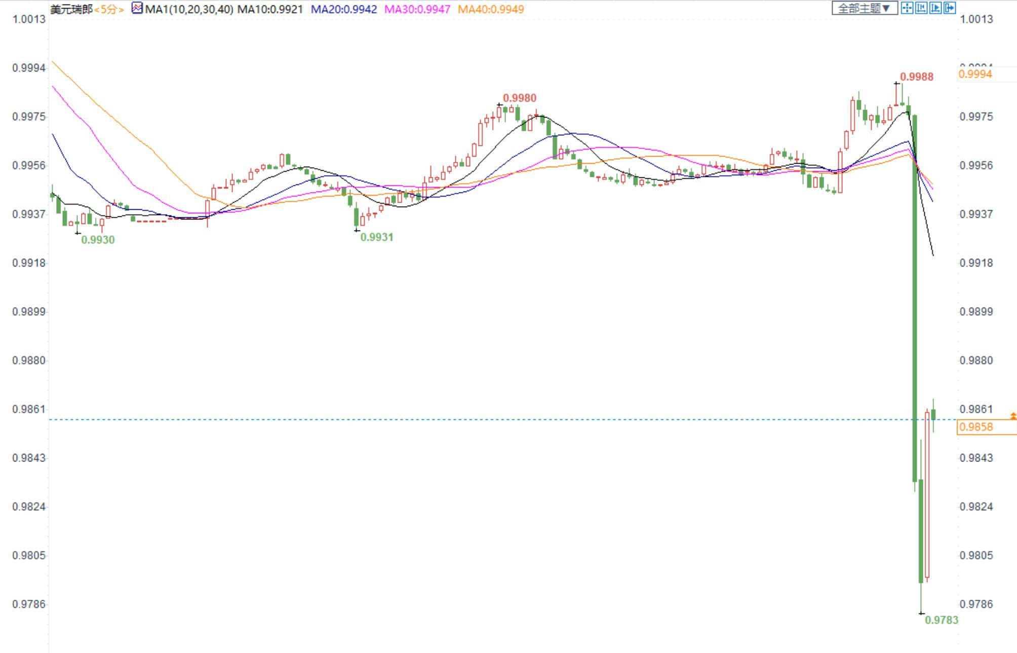 周四(6月16日)瑞士央行公布了6月份最新的利率决议,瑞士央行将政策利率从-0.75%上调至-0.25%。该行较预期意外升息50基点。本次利率调整为瑞士央行7年来首次调整利率,市场预期维持不变。市场上,决议公布后,美元兑瑞郎日内下跌1%,接近180点,欧元兑瑞郎在瑞士央行加息后一度跌1.2%。