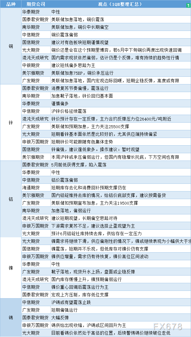 期货公司观点汇总一张图:6月26日有色系(铜、锌、铝、镍、锡等)