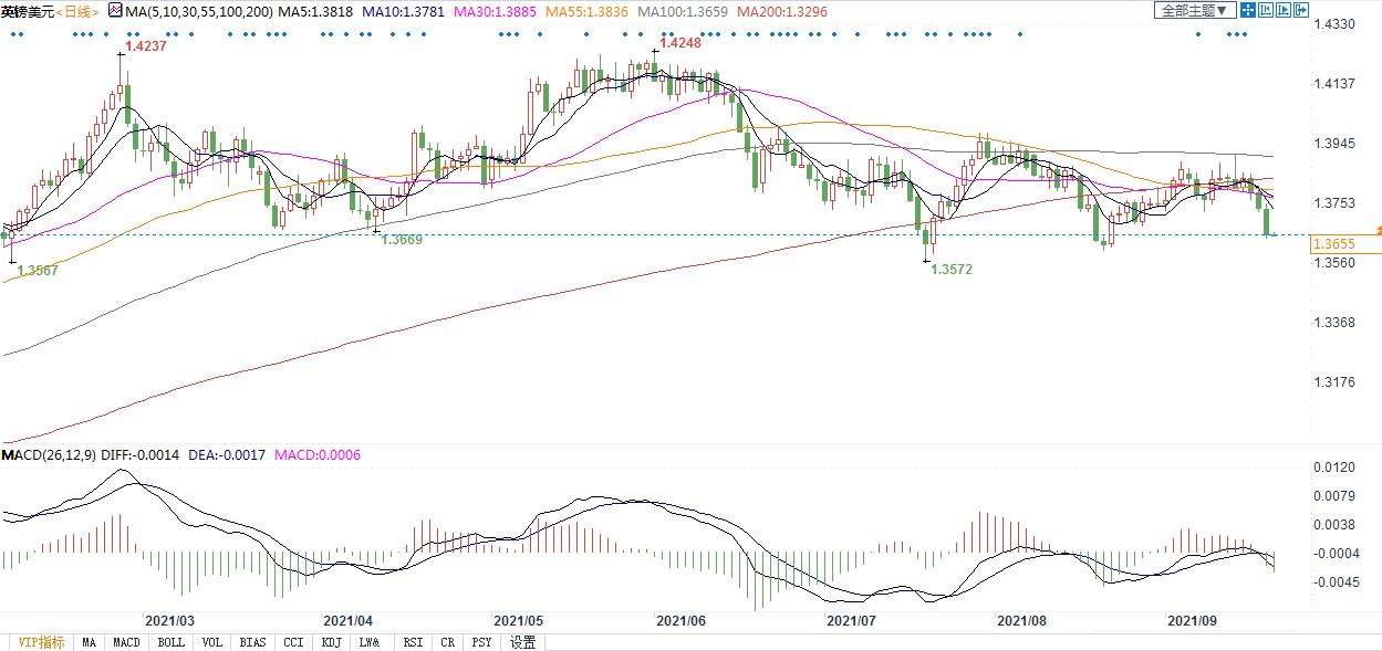 北京时间9月21日09:05,英镑兑美元报1.3659/61。