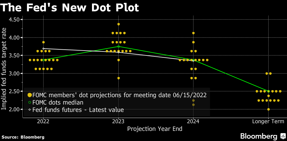 上周,美联储在决议上加息75个基点至1.5%-1.75%的范围,这是自1994年以来首次以这么大的幅度加息。美联储主席鲍威尔称,直到有明确且令人信服的证据表明,通胀正在减弱,美联储才会暂停加息。他还表示,美联储可能会在7月的会议上再次加息50个基点或75个基点。