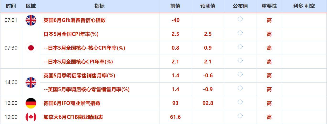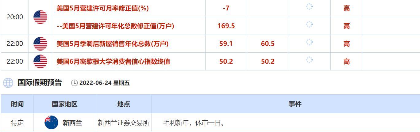 6月24日(周五)关键字:日本5月全国CPI年率,美国5月营建许可月率修正值,美国5月季调后新屋销售年化总数