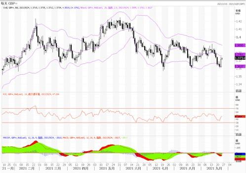 昨日英国央行货币政策委员会保持利率不变,但其量化宽松计划定于12月结束。货币政策委员会指出,自8月以来,收紧货币政策的可能性有所增加,不能排除在12月结束量化宽松之前加息的可能性。有预计货币政策委员会将在2022年8月和11月加息。这足以暂时帮助英镑,不过程度仍难以捉摸。自美联储昨日增强其鹰派立场以来,英镑一直在挣扎,对政策分歧的质疑给近期前景蒙上了阴影。英镑在几个月内第三次成功从关键支撑位1.36反弹。如果MACD指标能够显示出下行势头放缓的迹象,这将是一个相当可观的进展,目前1.3770-1.3800将是关键阻力位。如果能突破有望升势延展,否则英镑近期的颓势仍难以改善。