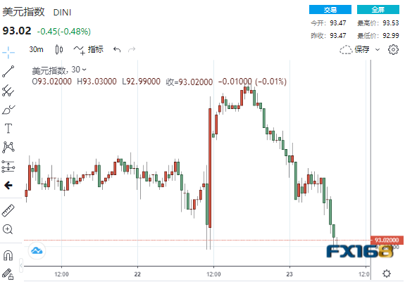周四(9月23日)美市盘中,美元指数回吐了前一交易日美联储决议后所录得的涨幅,再度跌破93关口;在美元下跌之际,现货黄金未涨反跌,连失三道关口跌向1740美元关口;美股三大股指强势上涨,本周均由跌转涨,其中道指暴拉逾600点。在市场消化美联储利率决议的同时,也在关注恒大债务危机的进展。本交易日,恒大有8350万美元的债券利息到期。