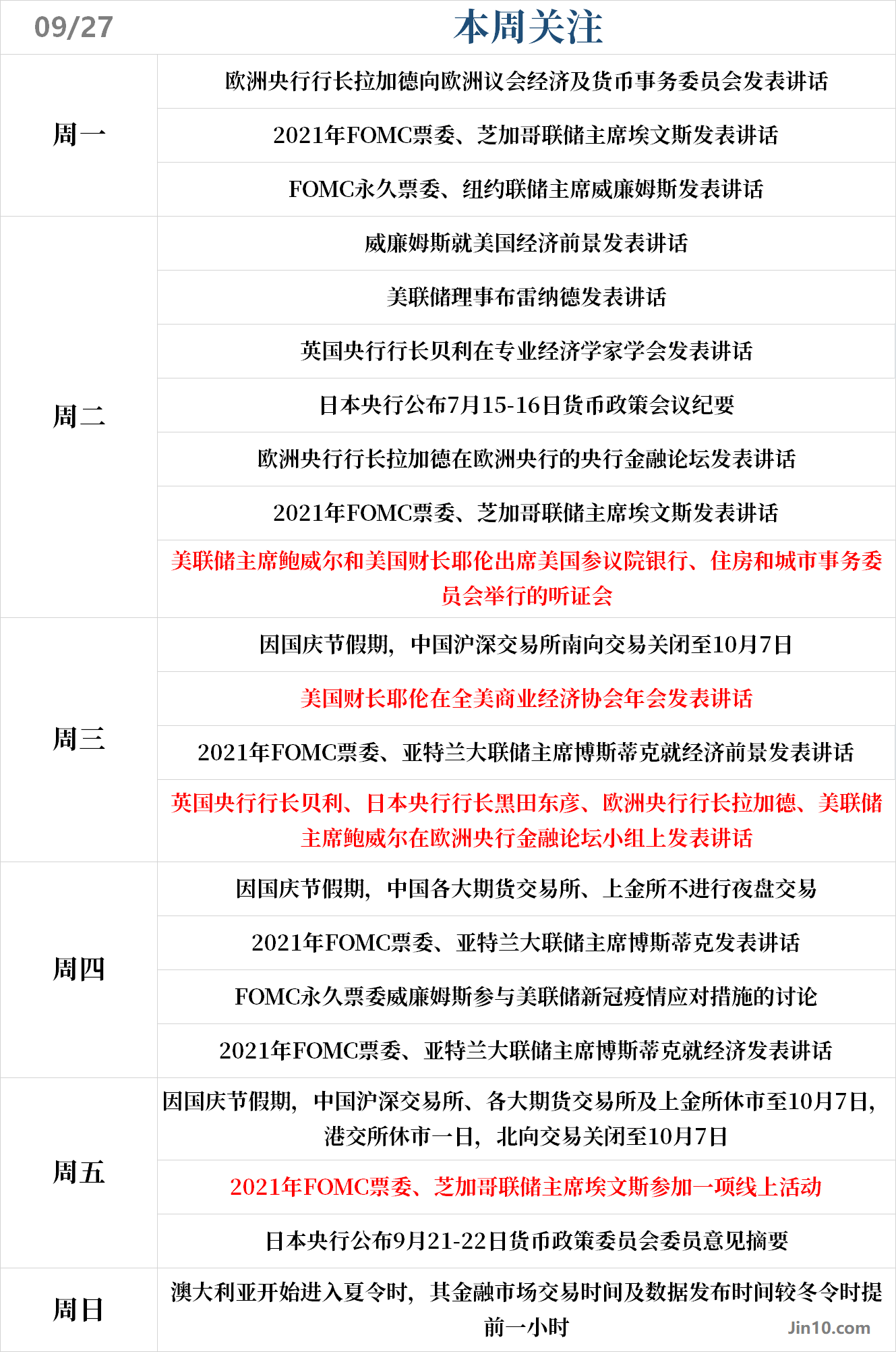 周日澳大利亚开始进入夏令时,其金融市场交易时间及数据发布时间较冬令时提前一小时。