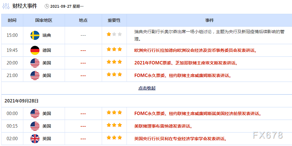 此外,2021年FOMC票委、亚特兰大联储主席博斯蒂克就经济发表讲话,2021年FOMC票委、芝加哥联储主席埃文斯将参加一项线上活动,投资者都需要予以关注。
