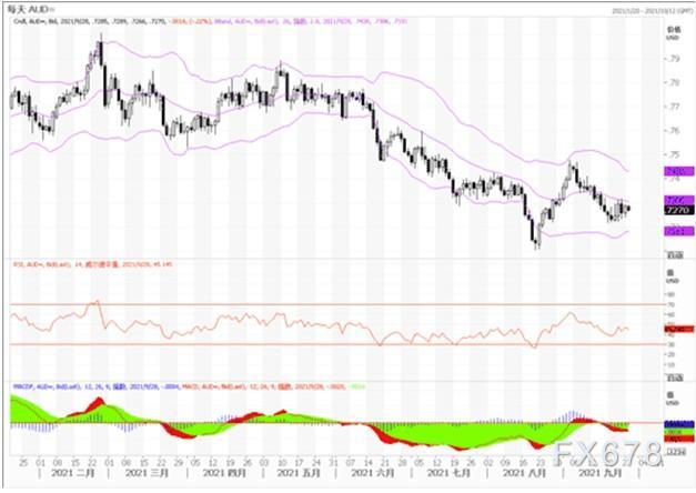 澳元/美元周一收于盘中高点 0.7292 附近,收复上周五大部分失地。大宗商品货币受惠于美元疲弱以及中国股市因恒大相关担忧出现缓解而表现更好。然而,全球股指涨跌互现,投资者正权衡美国经济好转以及美国即将缩减量宽的经济表现。因此也就限制了澳元的反弹表现。澳元/美元短线技术前景上看,澳元/美元交投于斐波位区间,在 8 月/ 9 月升势的 61.8% 回档位附近遇到买盘,但未突破 50% 回档位 0.7290。日图显示,自 9 月中旬以来,澳元/美元未有效突破后者,而持平的20均线与下一斐波阻力位汇合。技术指标尚处在负区,缺乏足够的动能表明澳元/美元将再度上涨。短期来看,4 小时图显示,澳元/美元处于中性,澳元/美元处在温和看涨的20移动均线上方,但仍处在大级别均线下方。动能指标温和向下,处在 100均线附近,相对强弱指标盘整于 55 附近。如果澳元/美元能回挺至0.73之上,涨势有望得到进一步延续。