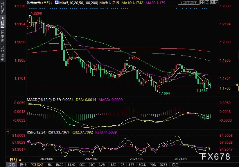 周一(9月27日)欧元的卖压依然存在,欧元兑美元跌至1.1685附近的新低,距离创逾一个月低位仅一步之遥。
