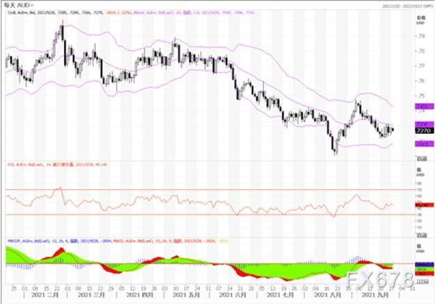亚市澳元/美元触及高位 0.7310,然后美国时段跌至 0.7225。由于全天风险厌恶情绪维持,澳元/美元收于 0.7235。由于经济运行持续瓶颈和供应链中断,投资者担心全球经济复苏的步伐。另外,黄金疲弱,打压澳元/美元,金价跌至一个月低位。美联储主席鲍威尔和美国财政部长耶伦一起在美国参议院就冠状病毒和《冠状病毒援助、救济、经济保障法案》(CARES 法案)作证,重申他们“几乎已经完成”缩减量宽规模的测试,也是施压澳元的重要因素。澳元/美元跌破关键阻力 0.7250 下方,该水平是 8 月/9 月升势的 61.8% 回档位。日图显示澳元/美元已接近温和看跌的20均线,然后恢复下跌,成为空头维持信号。技术指标恢复朝下,处在负区,表明澳元/美元有望进一步下跌。从短期来看,4 小时图显示,澳元/美元正跌破所有均线,20均线恢复跌势,处在大级别均线下方。相对强弱指标盘整于 42 附近,汇价风险偏向下行。若澳元/美元跌破支撑位 0.7210,澳元/美元可能会加速下跌。