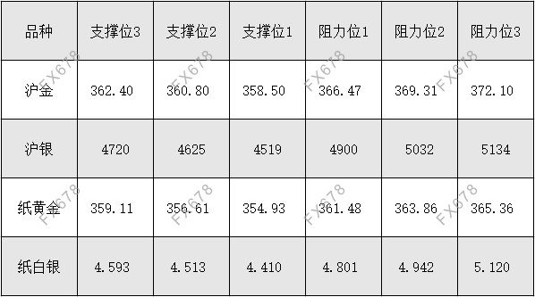沪金、沪银、纸黄金、纸白银阻力支撑位