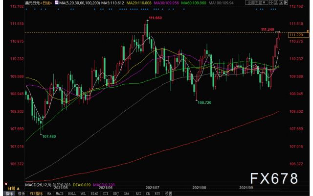 北京时间9月28日14:13,美元兑日元报111.22。