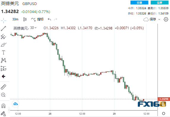 周三(9月29日)美市盘中,受美联储年底前缩减资产购买规模和可能在2022年底加息的预期升温提振,美元指数持续攀升,日内大涨0.7%至94.44高点;随着美元霸气初显,包括欧元、日元和英镑在内的主要非美货币纷纷回落,其中英镑大跌超140点至1.3411,为去年12月以来的最低水平;现货黄金也遭遇抛售潮袭击,跌向1720美元/盎司关口。日内,欧洲央行行长拉加德、美联储主席鲍威尔、英国央行行长贝利和日本央行行长黑田东彦出席了在葡萄牙辛特拉举行的欧洲央行论坛。