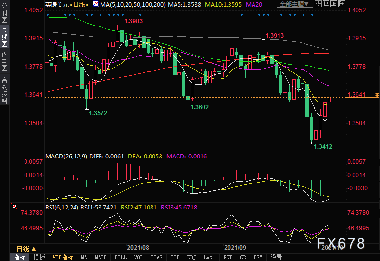 周二(10月5日)英镑兑美元从欧洲早盘低点反弹超过40个点,并在过去一小时攀升至新的日高约1.3625区域。