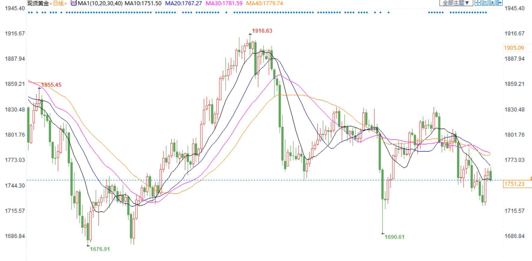 北京时间19:19,汇通易汇通软件报价,现货金价报1751.00美元/盎司